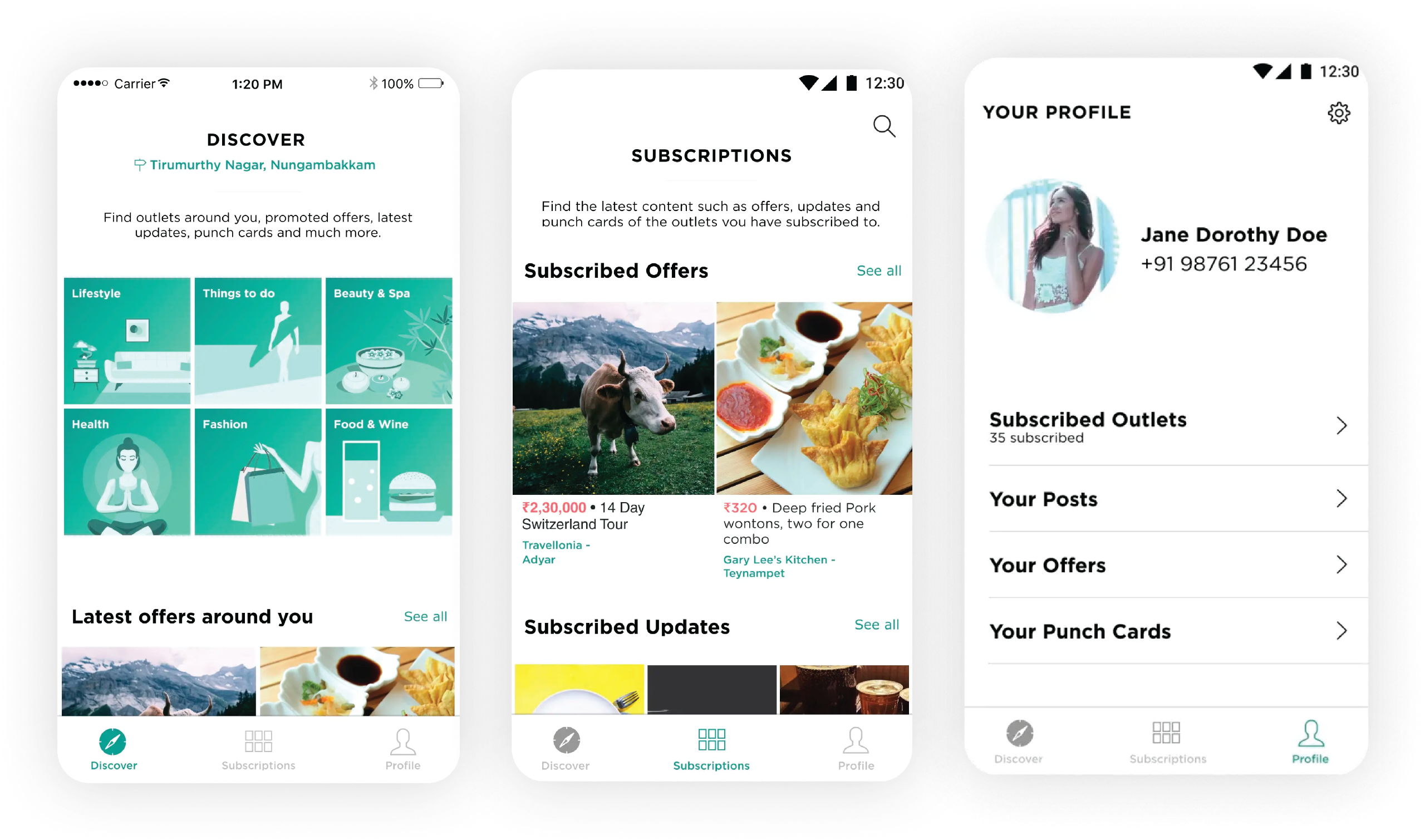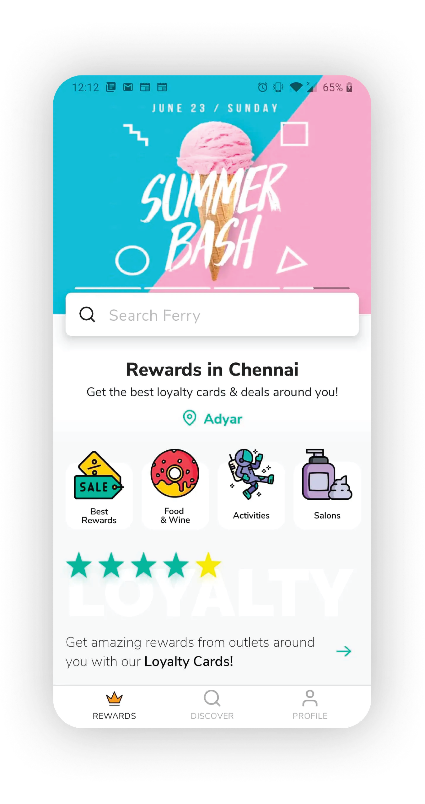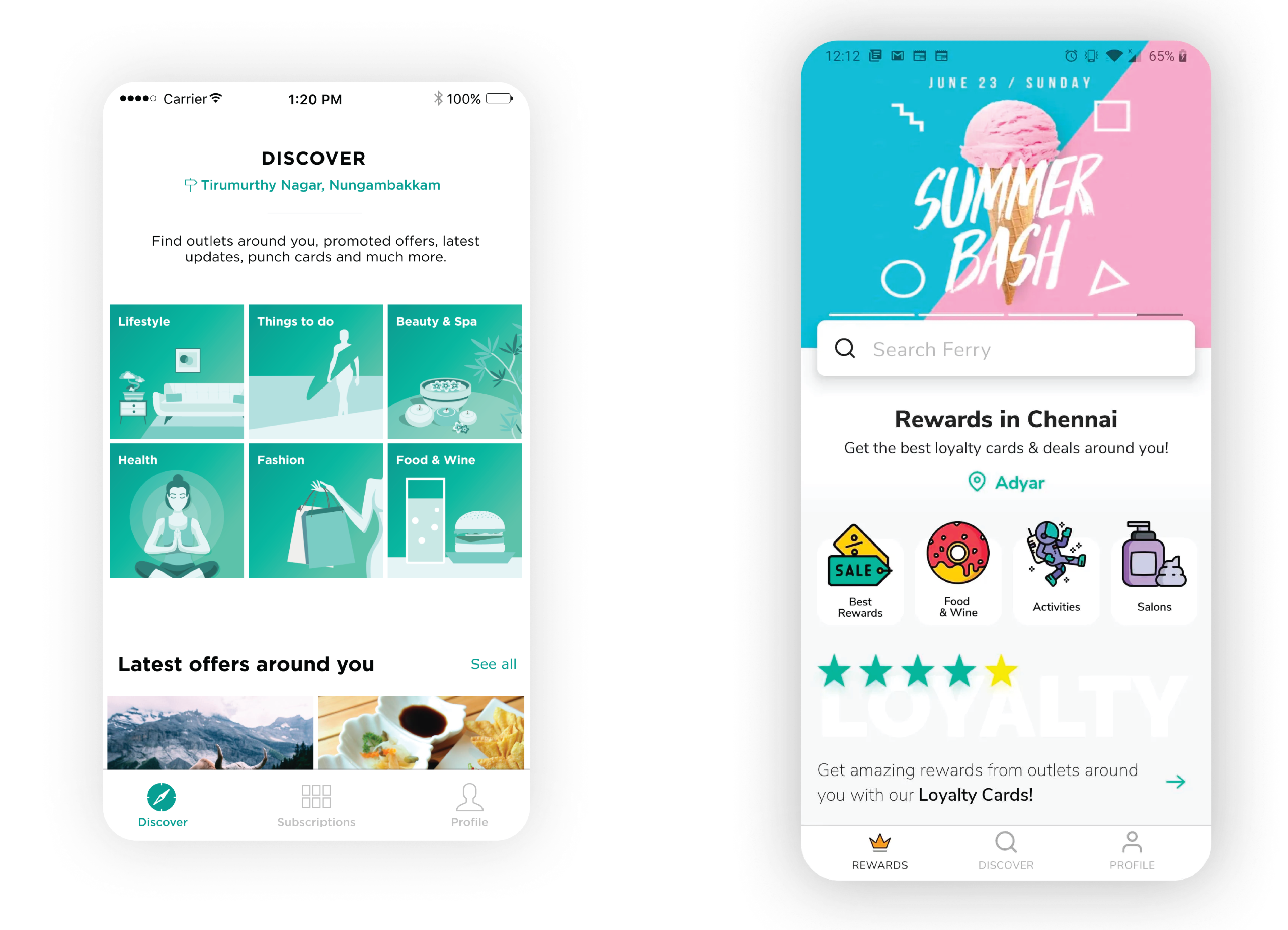 Our current iteration consisted of three sections:Discover: Enablement to discover all kinds of content from outlets closest to you. (Loyalty Cards, Posts, Products, Offers)Subscriptions: A personalized space for each user to monitor the latest content from outlets they subscribed to.Profile: Standard Profile pageThis iteration revolved around the expectation that users would subscribe to their favorite outlets to receive updates from them.We got users to share their opinion on this and they all seemed to share the same opinion — that they preferred just the rewards on Ferry. They also didn’t mind seeing the offers posted by outlets. We decided to work on this common feedback from the users and we restructured the home page to:Rewards: showcase all loyalty cards, instant rewards, spend meters in the form of collectionsDiscovery: combined outlet listings and offers that users could browse and discover)Profile: Revamped to show useful content like active rewards, recents, etc.This proved to be a very effective solution — we saw more activity on the app, more reward programs being redeemed, and a rise in downloads.