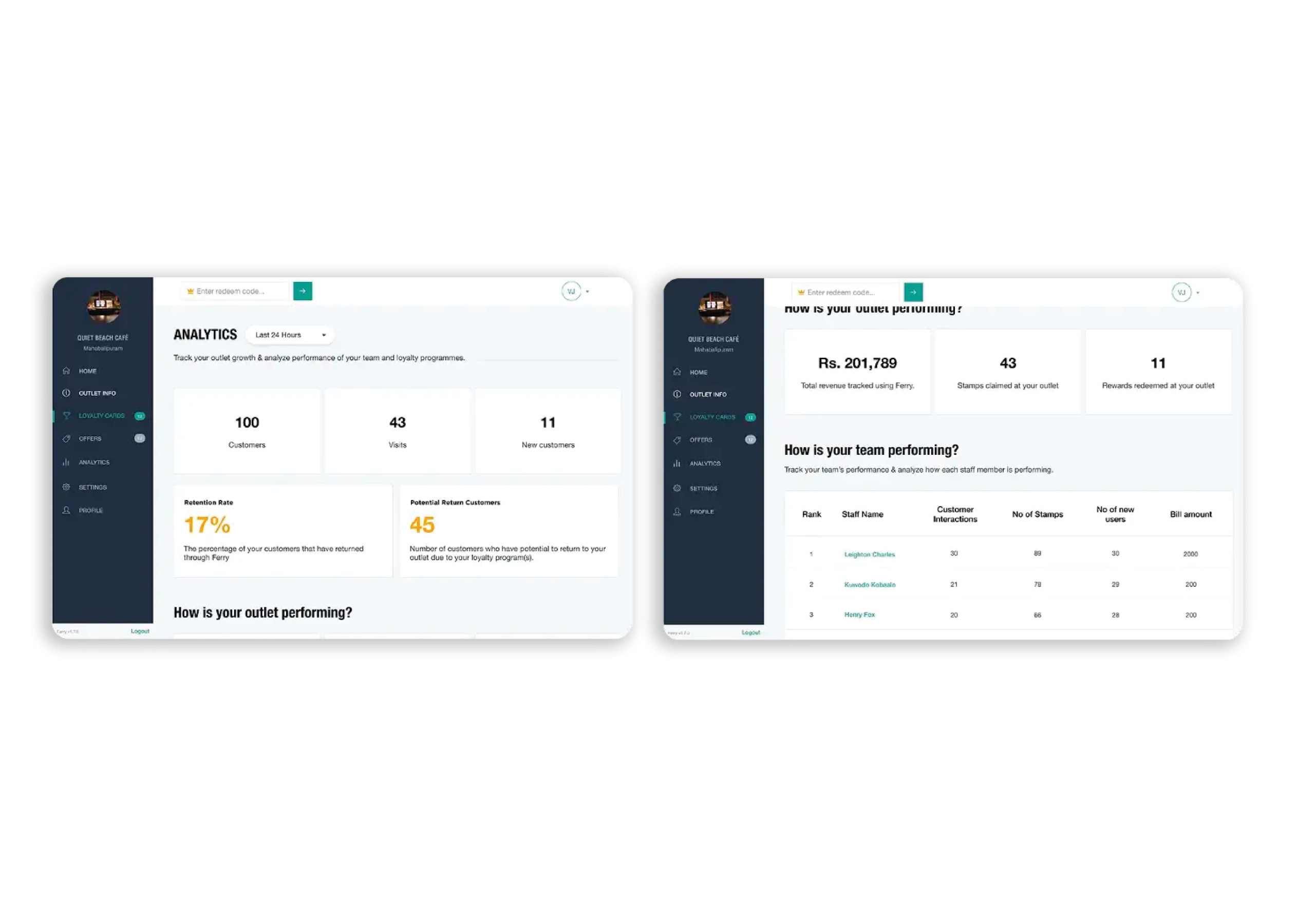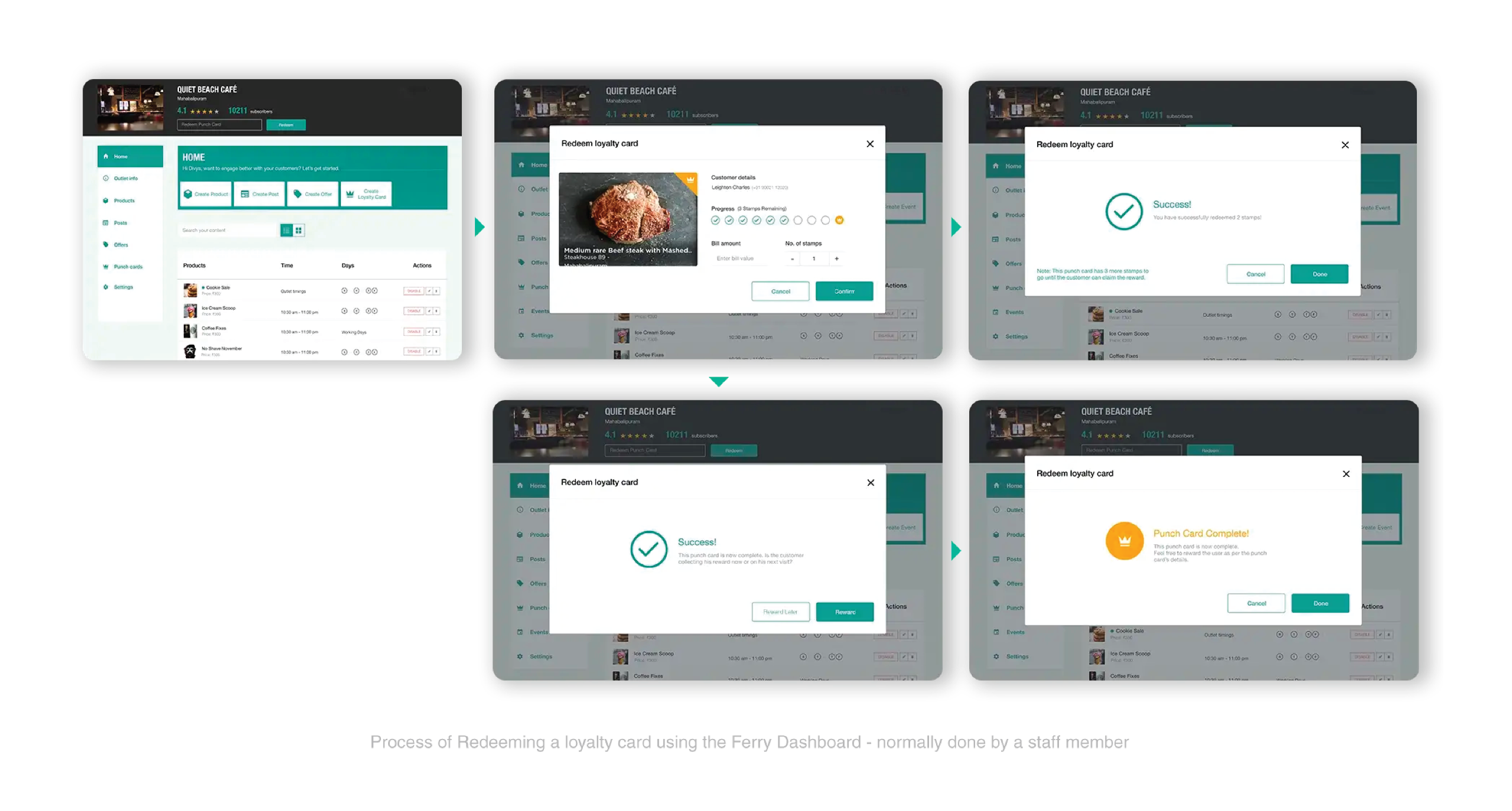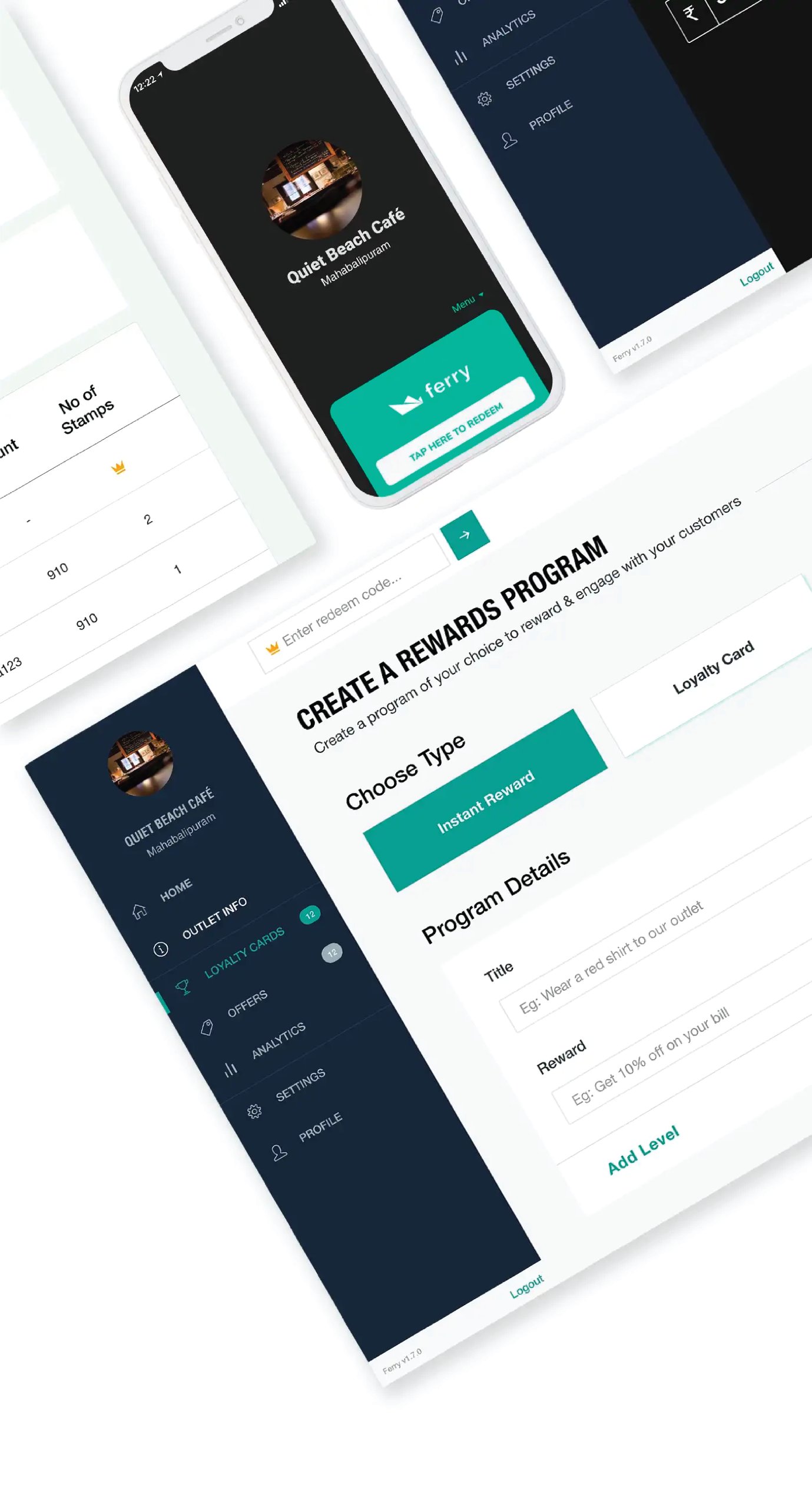 Ferry Dashboard helped businesses facilitate interactions with customers by encouraging loyalty, monitor customer-spending by entering the amount spent and the ability to view data and analytics seamlessly for owners to see how their outlet and staff are performing.