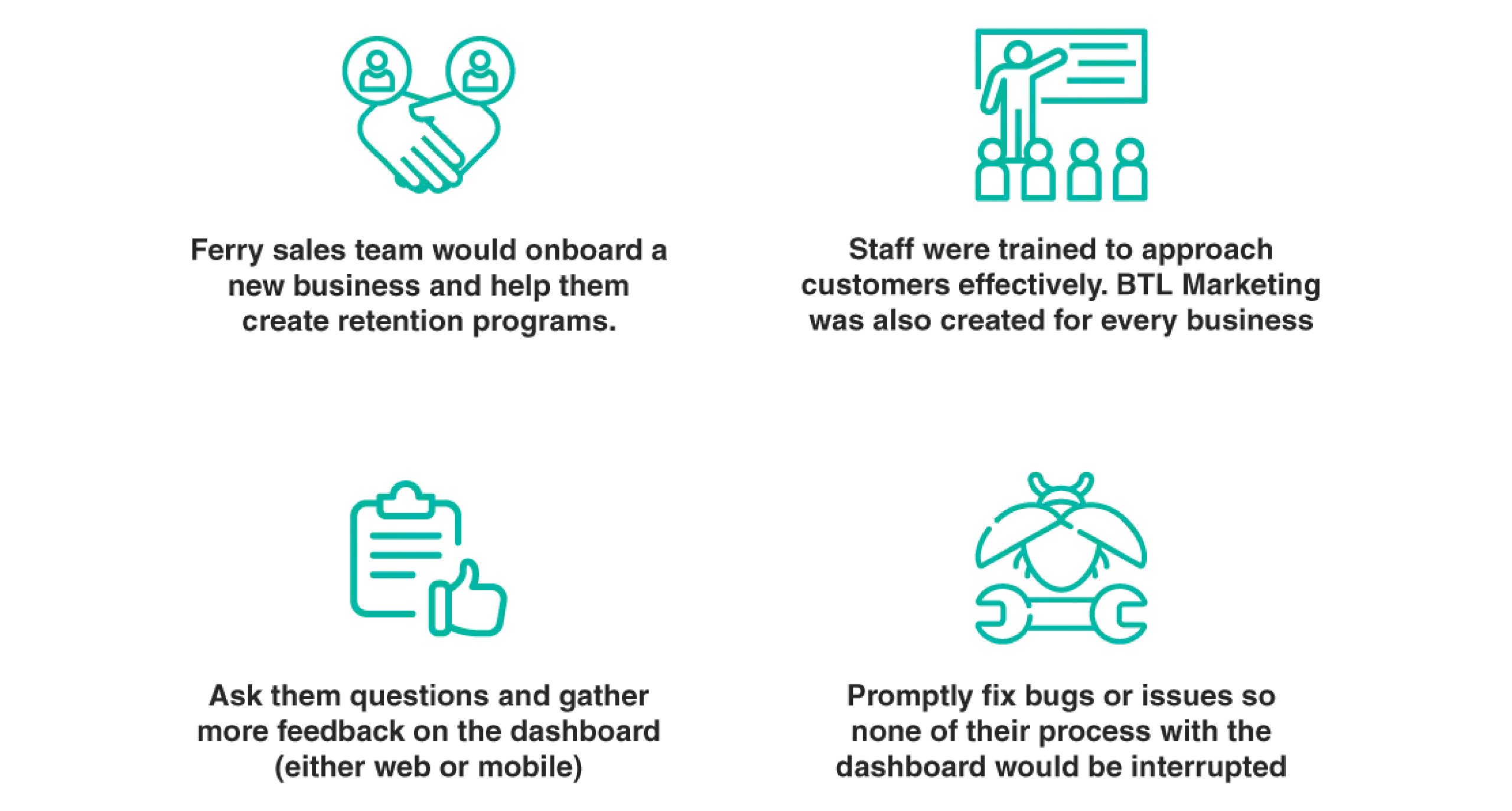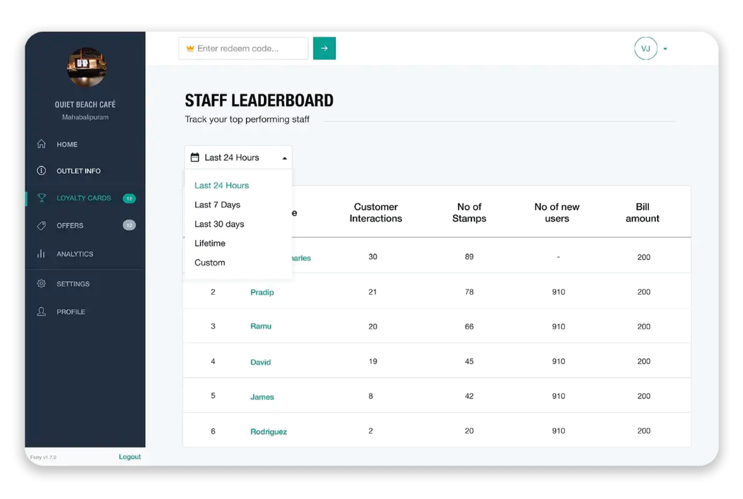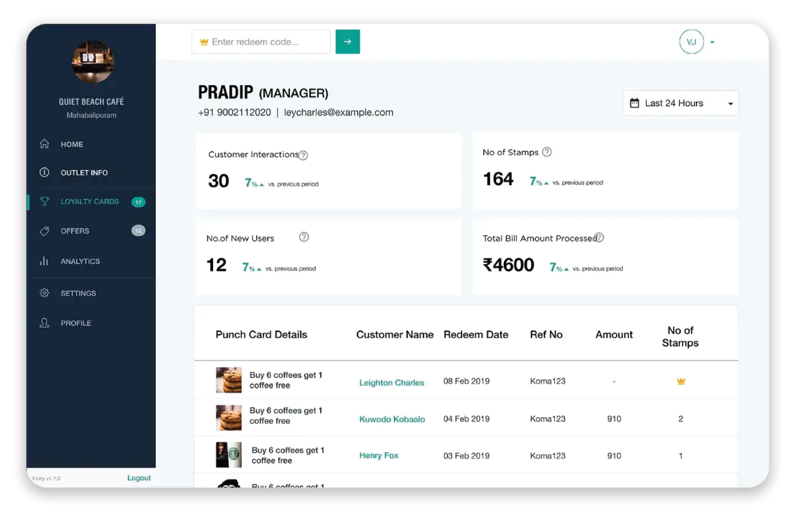 Ferry Dashboard helped businesses facilitate interactions with customers by encouraging loyalty, monitor customer-spending by entering the amount spent and the ability to view data and analytics seamlessly for owners to see how their outlet and staff are performing.