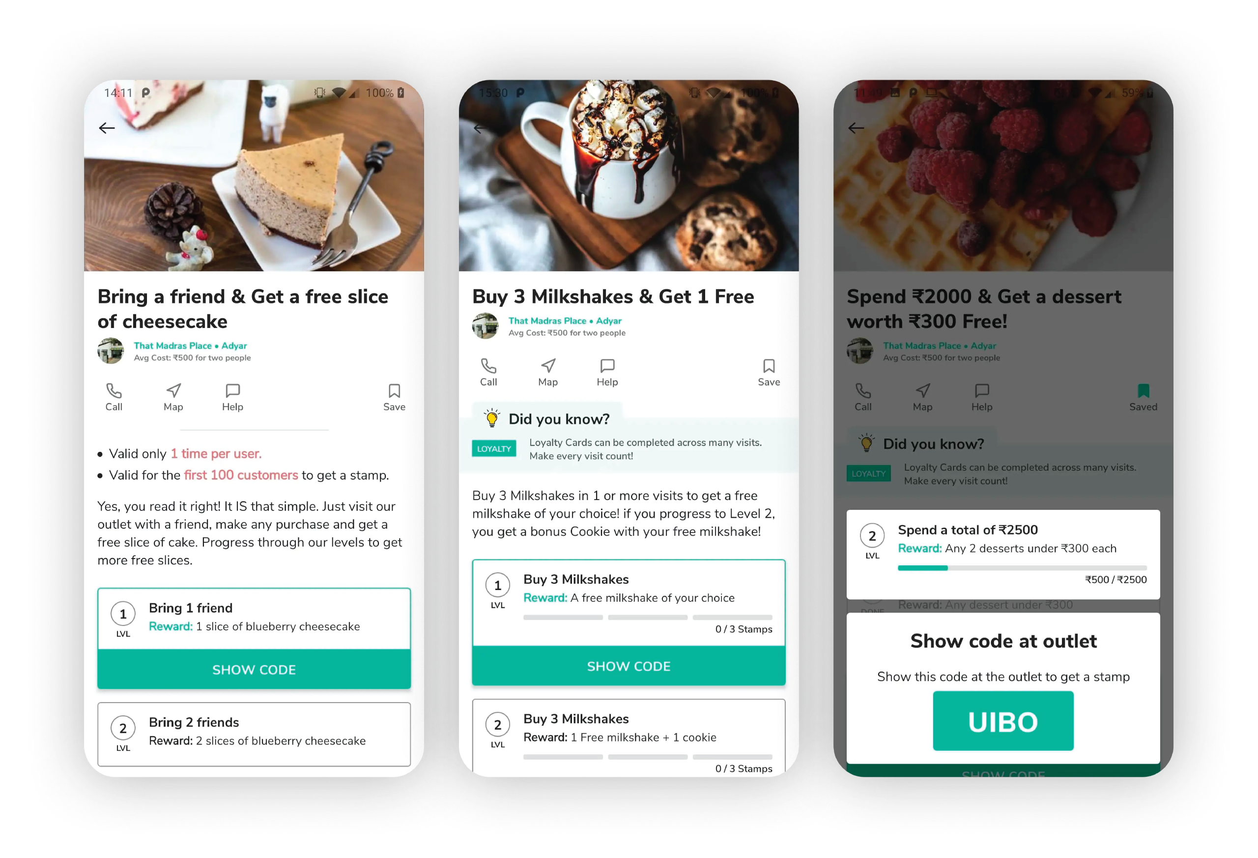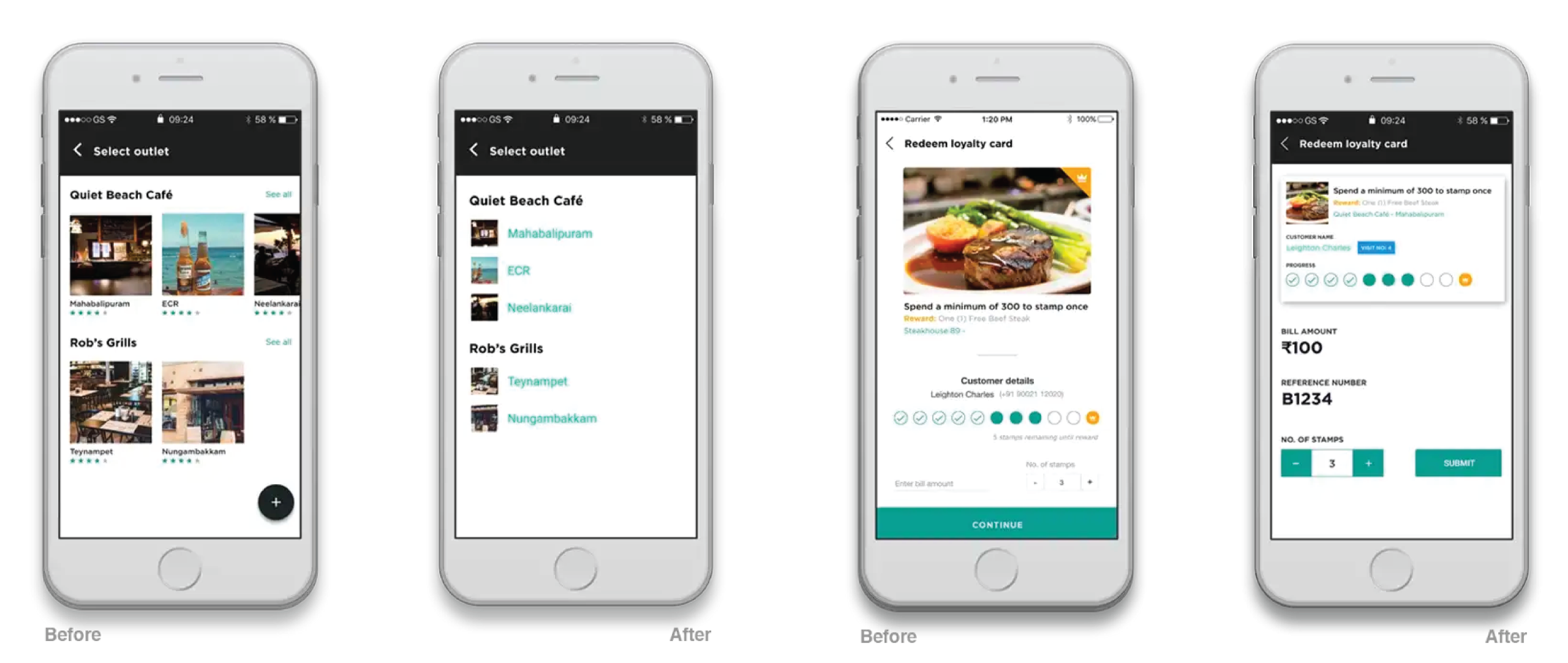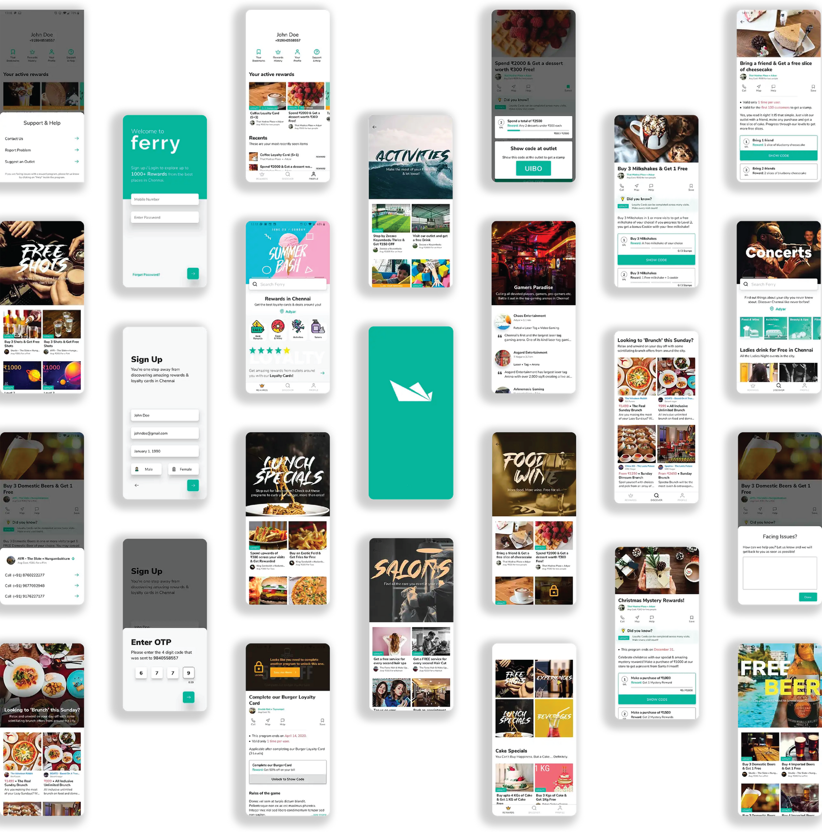 Ferry had a soft/beta launch at the Slate Hotels, which had two outlets catering to food and beverages: — Studio and AYR. The team in India were at the outlet to assist the staff with any questions or hiccups in the process of validating a customer. We also used this opportunity to collect more user feedback to assist in our upcoming iteration process.Some customers suggested having a price range field, so they’d know how much they would have to spend at a particular outlet.Customers wanted the search to be more in focus as they found themselves reaching for the icon on the top right of the screen.Customers also wanted to know about their progress on certain loyalty cards from the get-go, rather than manually selecting and opening each loyalty card to know their progress.Users mentioned they would like the validation information higher up the expanded view screen, rather than at the bottom.Users also said that having the “call”, “map”, “help” features from the hub would be ideal in the expanded view screen.We noticed certain users unsure that they could carry over this loyalty card over another day and they weren’t required to finish it during one visit.We also noticed that downloading an app to just punch/stamp a loyalty card once could be a hassle and would lead to an uninstall if they weren’t going to visit again very soon.Users who downloaded the app found the existing onboarding process very cumbersome and time-consuming.Almost every customer said they enjoyed the look and feel of the app. They found the browsing experience on the app extremely simple and easy to use. This encouraged us that we were on the right track.