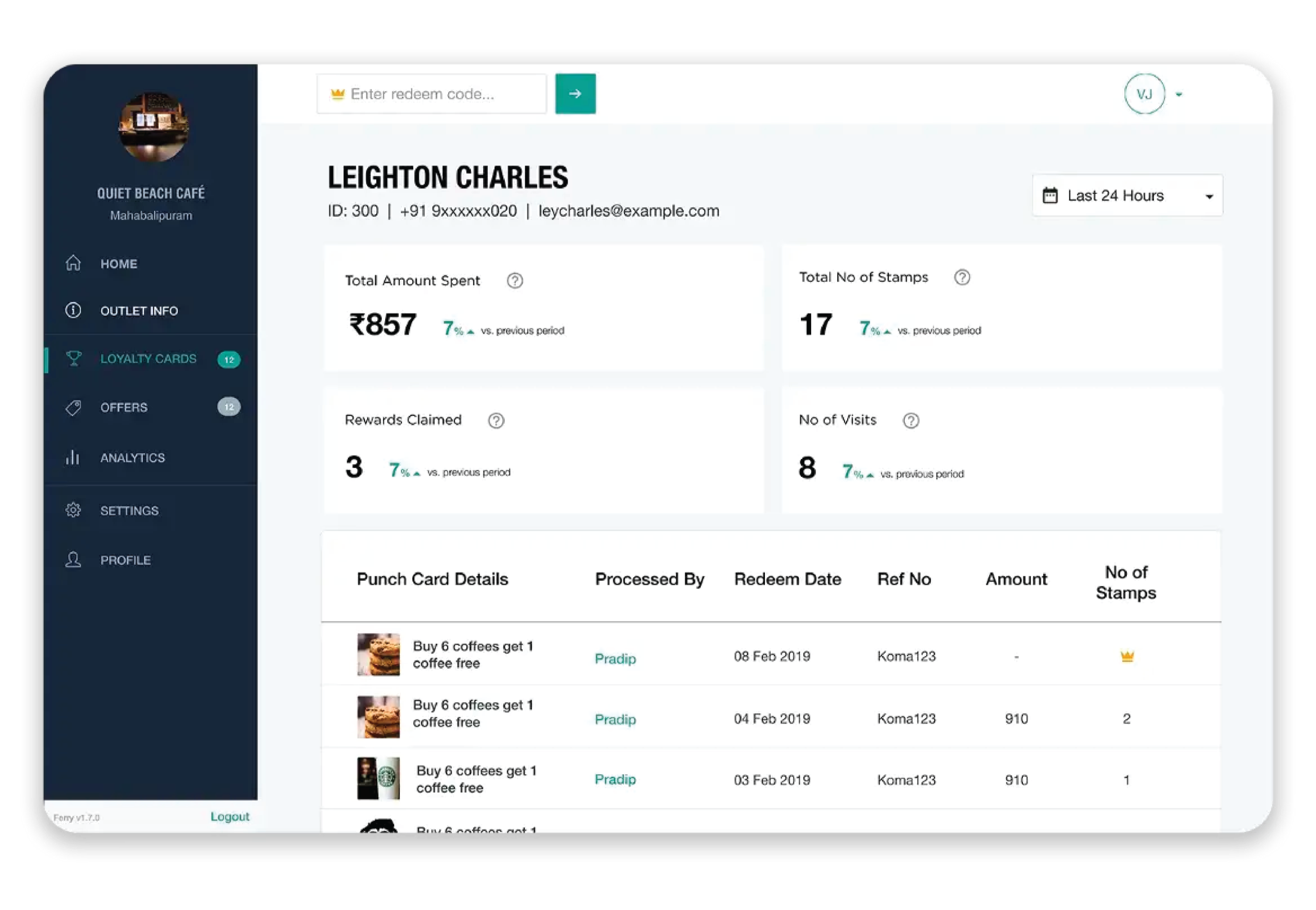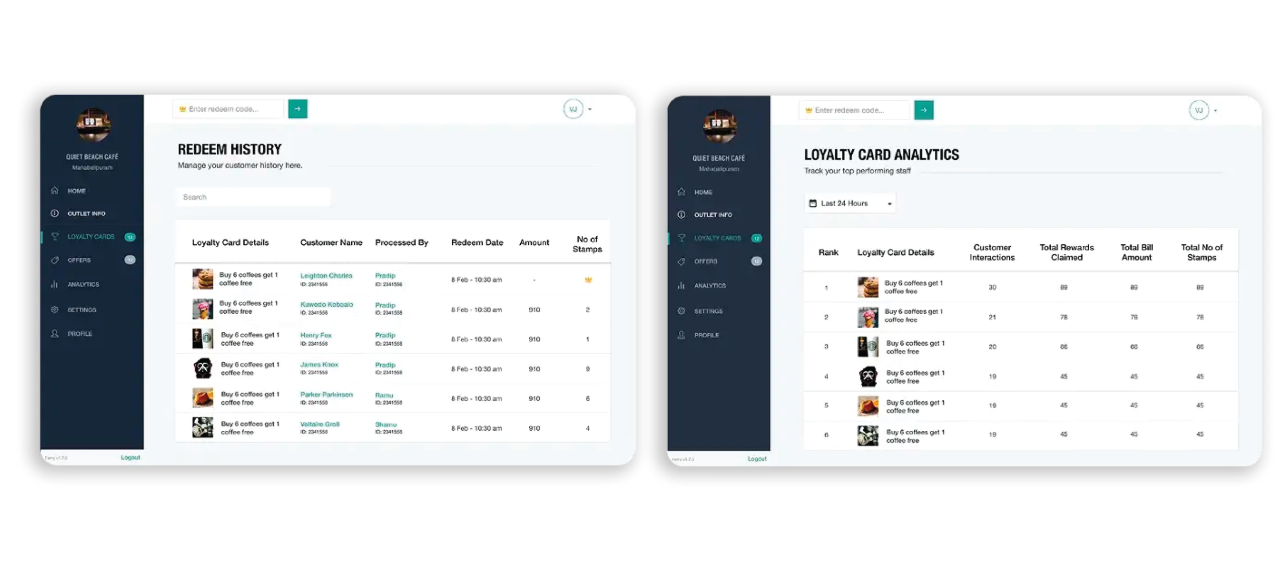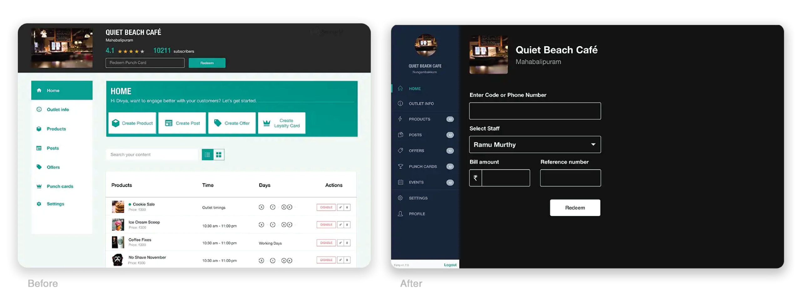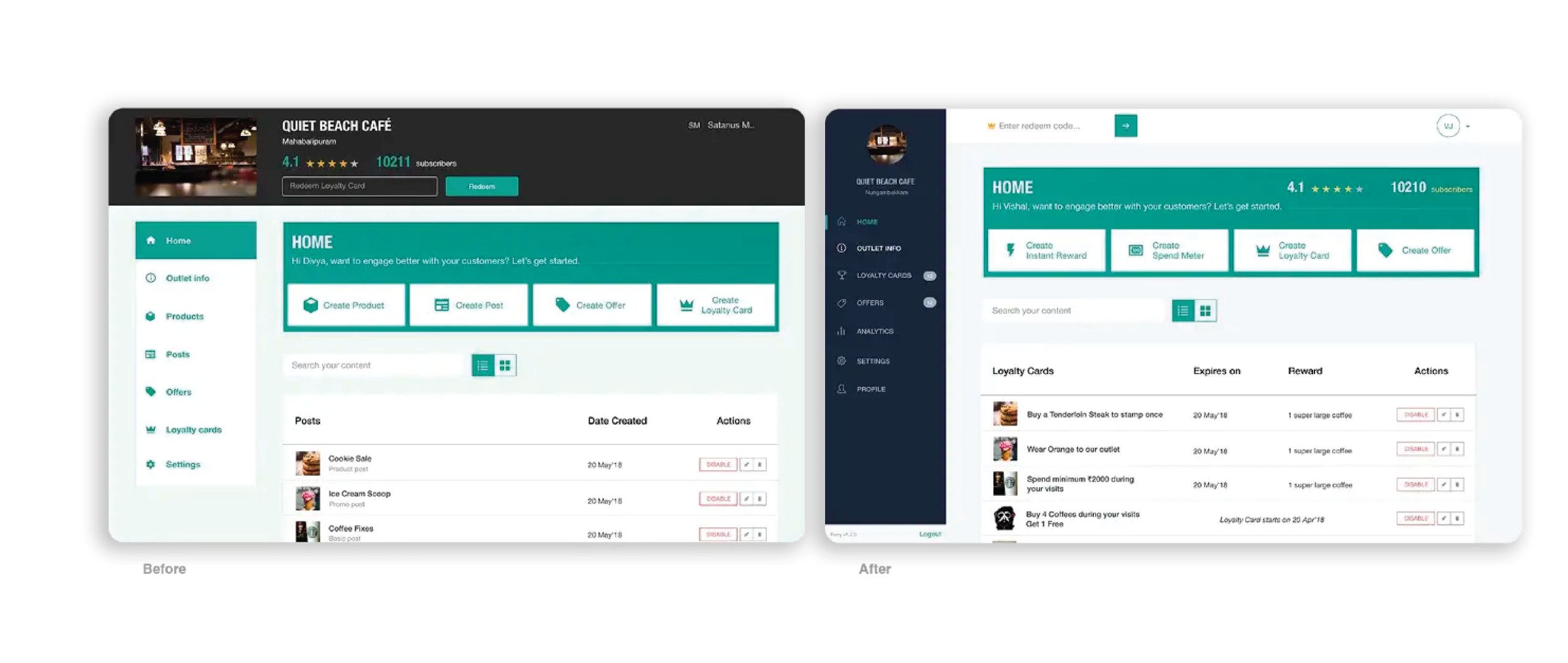This took responsibility away from the customer and the staff and helped make the process more efficient.Only relevant reward programs were shown, no locked cards or expired validity cards would be shown. It also decreased confusion while using the dashboard for redeeming.