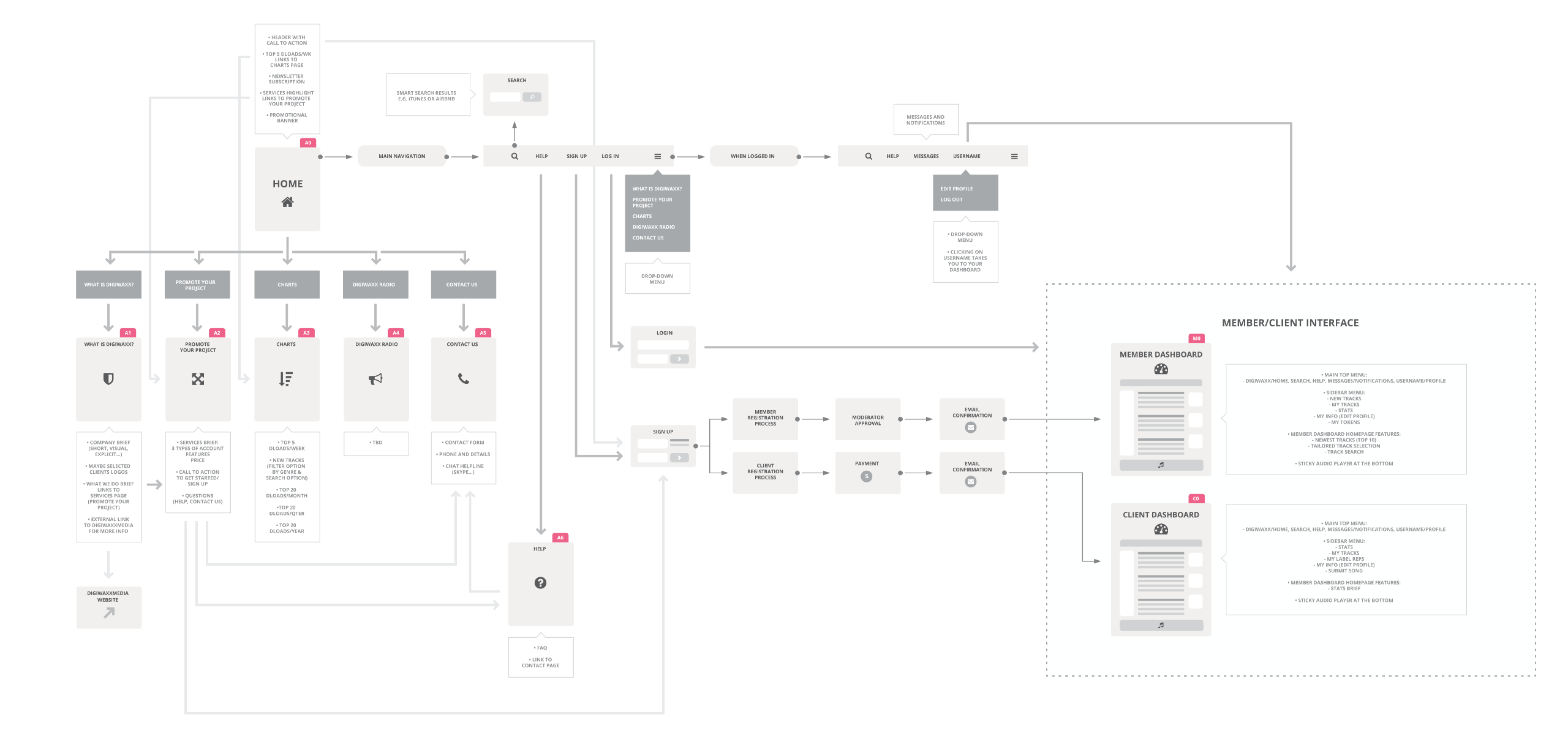 We reiterated the user flow to account for the two types of users - DJ's and Artists.