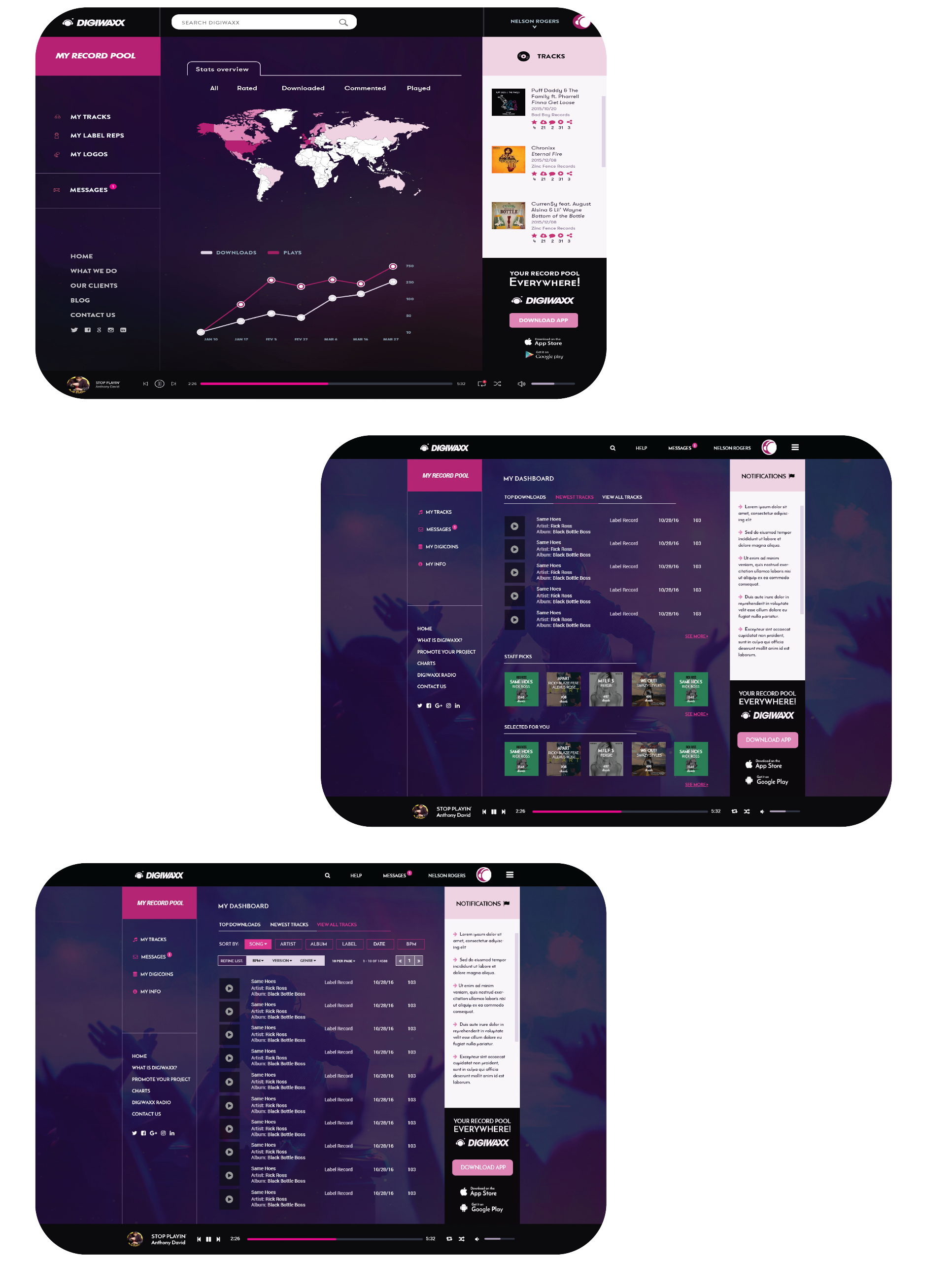 Using a user-centered design approach, as the Project Manager and one of two UX Designers, I led the Digiwaxx team through discovery and research studies, ideation process, design iterations and execution of the design with our development team.