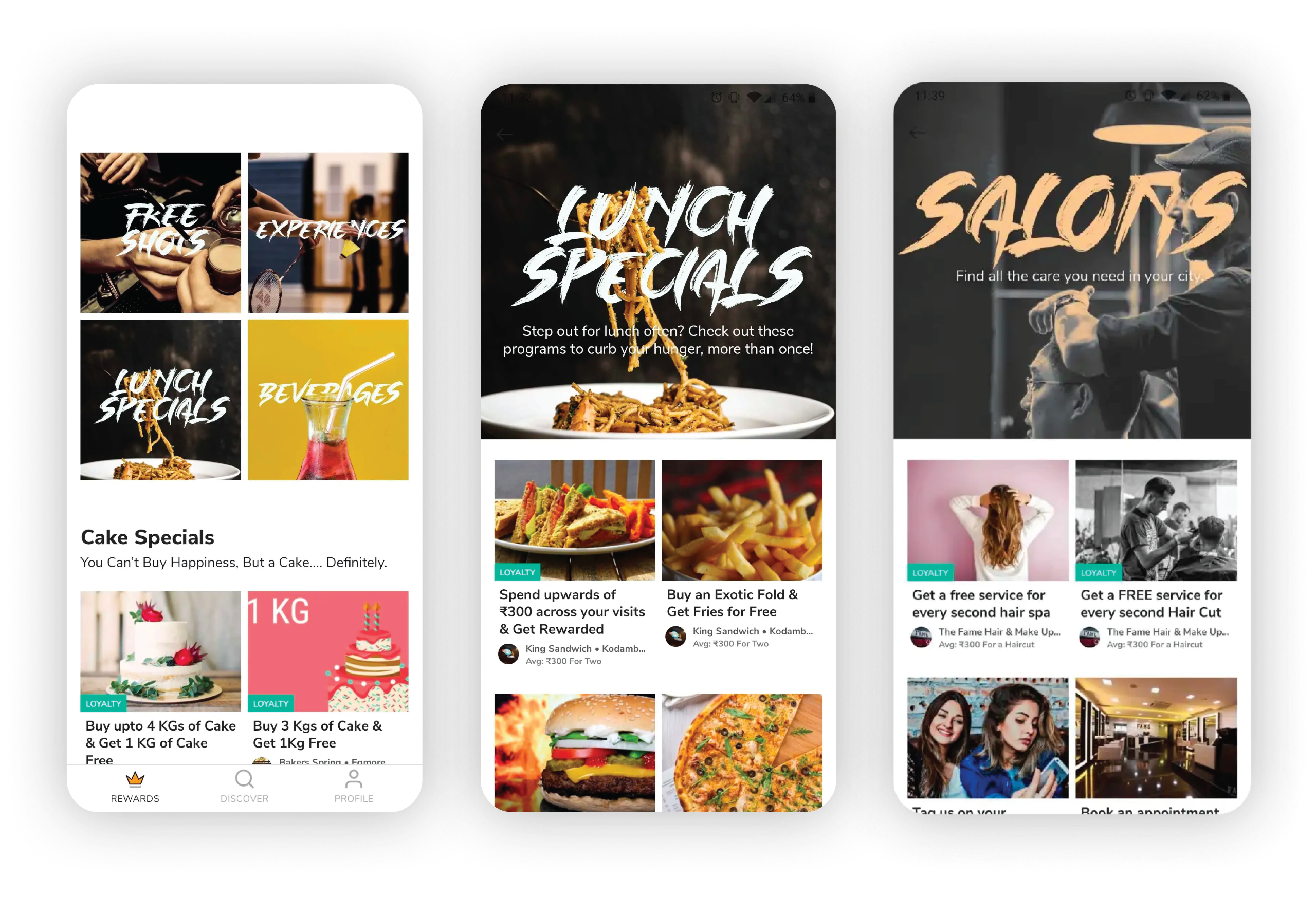 First, we canvased the current market to examine our immediate competition and how our product could help users in finding their way back into businesses.Our findings included:~- No rewarding system existed amongst these competitors.~~- Apps like Groupon and Nearbuy encouraged "deal hunters" who would visit the store for a deal and never return.~~- Very few apps shined attention towards other industries like salons, futsal arenas, etc (these are places that always saw more returning customers than others) ~Interviews~- We interviewed close friends who had a knack for visiting new and familiar places. Some of them relatively new to the city, some of them here for a decade or more.~Our findings showed:~- They love to go out and try new things but at the same time, they are more likely to go back to a place they can really resonate with as they enjoy the vibe of that outlet.~** - Most of our interviewees visited the same salon they have been going to respectively and see no reason to change.**~- Most of them are familiar with the existing staff and manager and are very rarely rewarded for their loyalty.~** - While they do use ordering apps for food, there was no platform curating salon and entertainment experiences.**** - They agreed they are more likely to visit a business they frequent much more if they were rewarded for it.**** - There was clearly a gap to be addressed. These individuals enjoyed visiting places but found themselves always wanting a little more for the loyalty they showed to a business.**