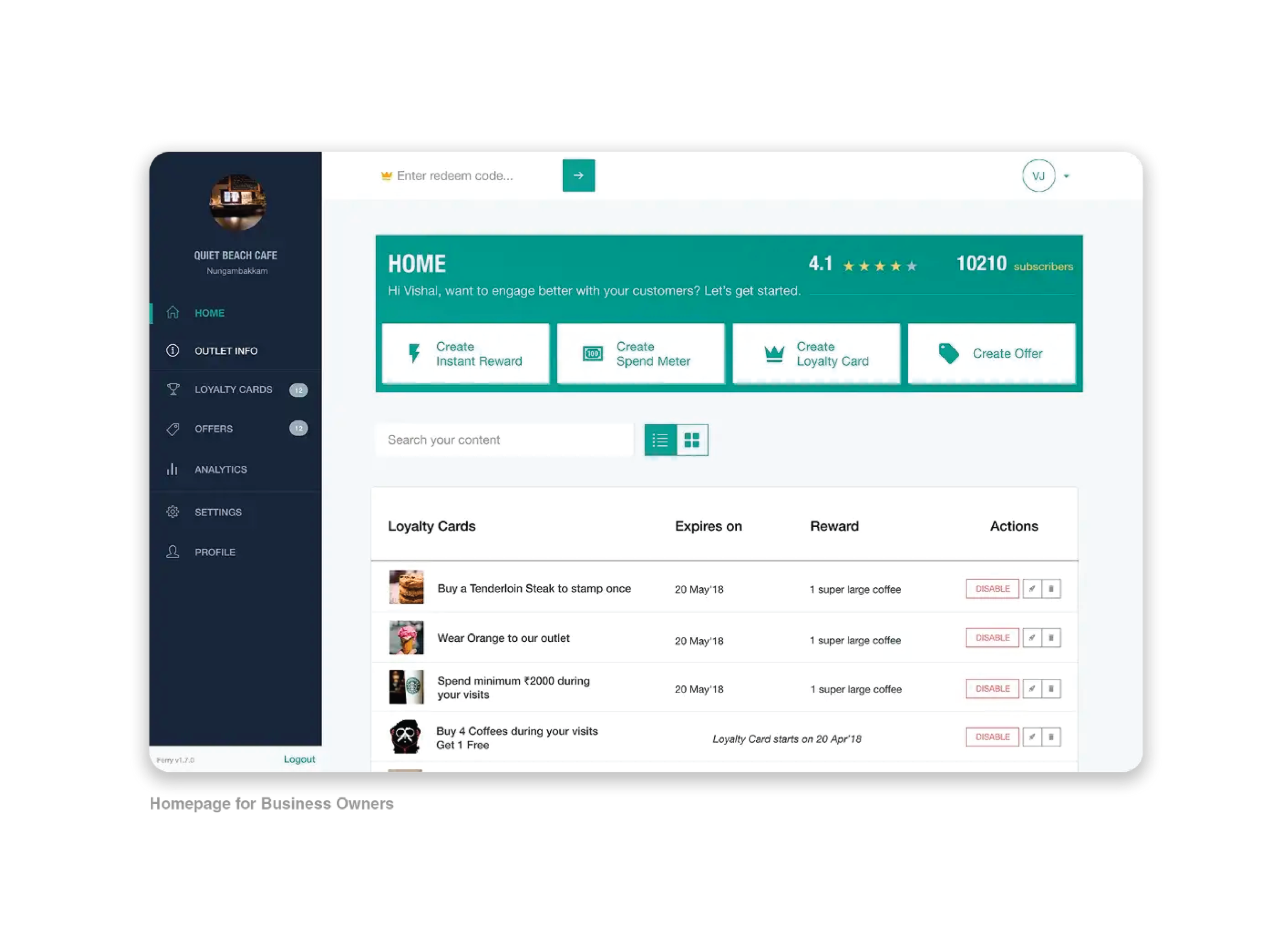 While we worked on all of this, we were also building the business dashboard for merchants to validate their customers.The organization of content was well received by the people we showcased our prototype too.They enjoyed this new take on the concept of loyalty cards and how they could keep track of their visits and also be aware of when they are due for a reward.This was very reassuring for us as it gave us the necessary confidence to approach businesses and partner up with them for our soft launch.