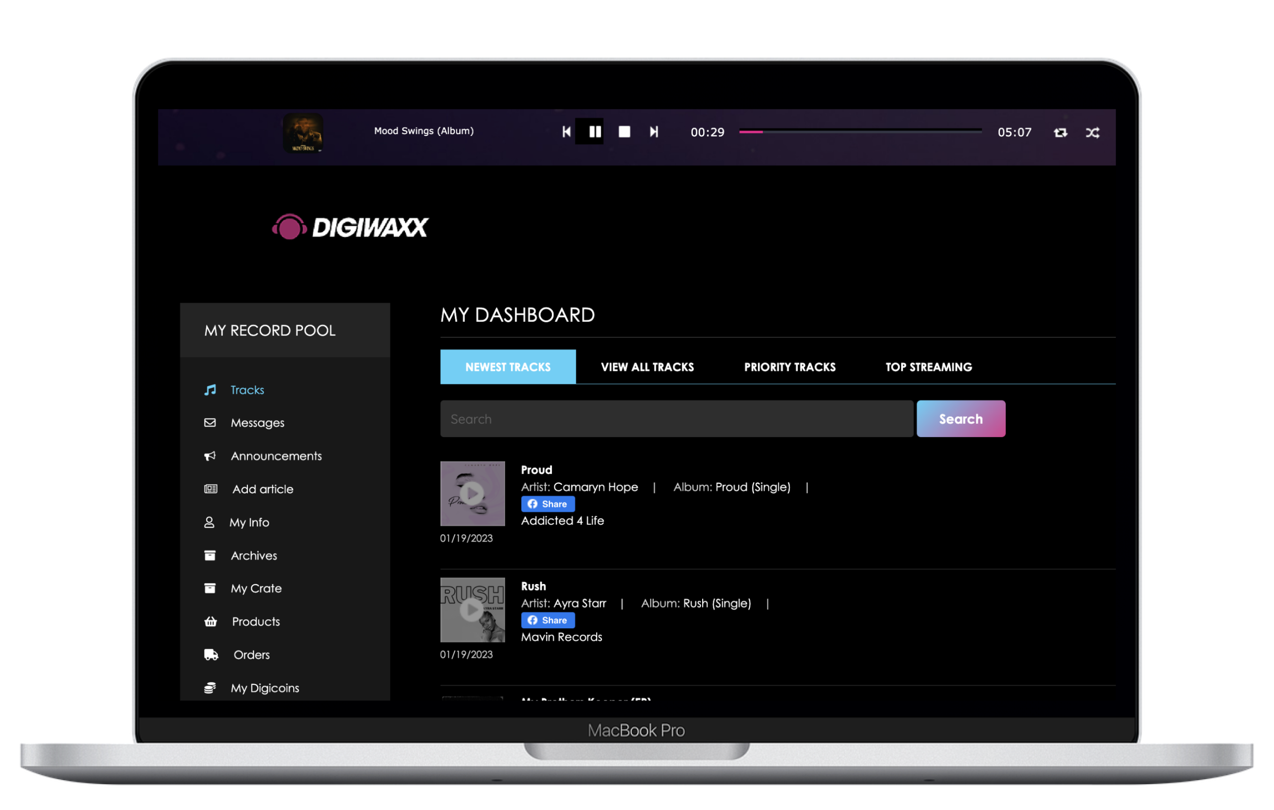 DIGIWAXX is a music marketing agency and most known for its web-based software... a record pool for DJs and Record Labels. For over 20 years they have been dedicated to giving DJ’s high-fidelity music, whilst providing artists and labels notable metrics into how DJ's are engaging with their releases.Providing substantial impact for both DJ's and Artists alike, Digiwaxx was not lacking in it's user-base with an active 60,000 users (DJ's), which is roughly 3% of the DJ market, and another 10,000 active client-users (Artists + Record Labels).However...